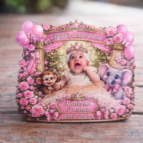 Elif Nur Latife Kazan • 1 Yaş Kraliçesi | Kişiye Özel Ahşap Magnet